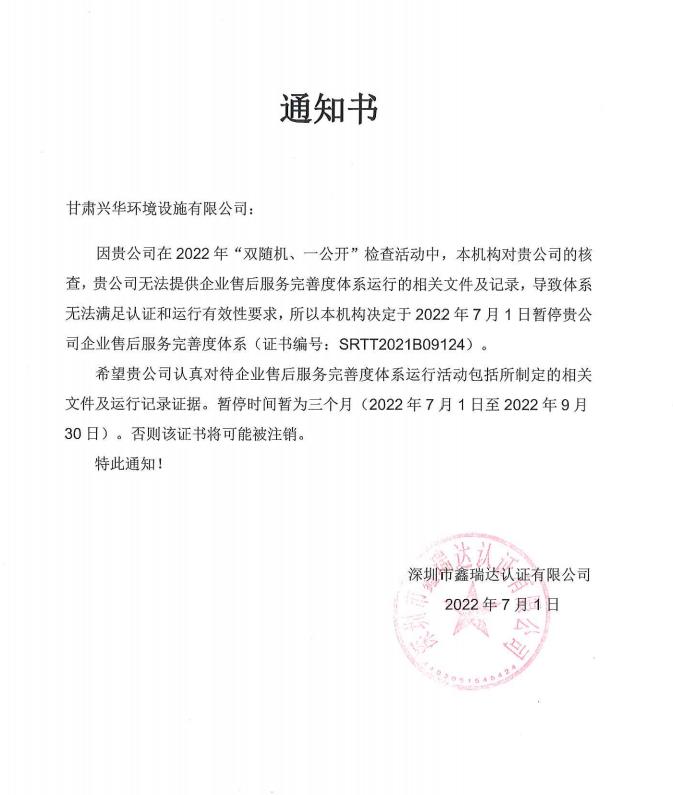 興華服務(wù)07月01號暫停通知書